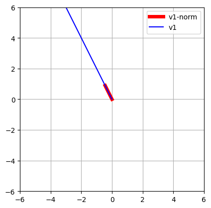 Let’s say there is a vector v and a scalar mu, then the scaled vector v will have a length of magnitude of one: